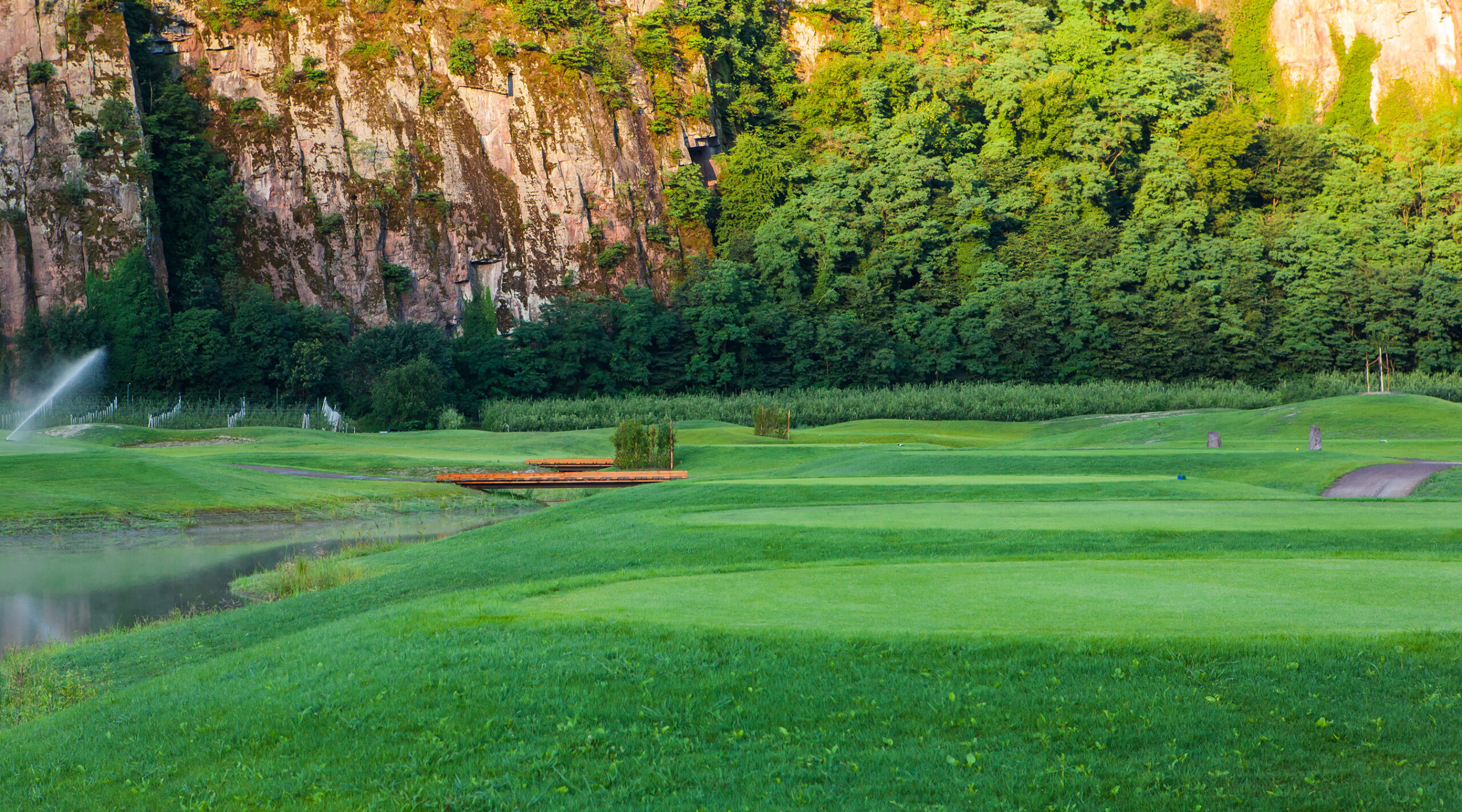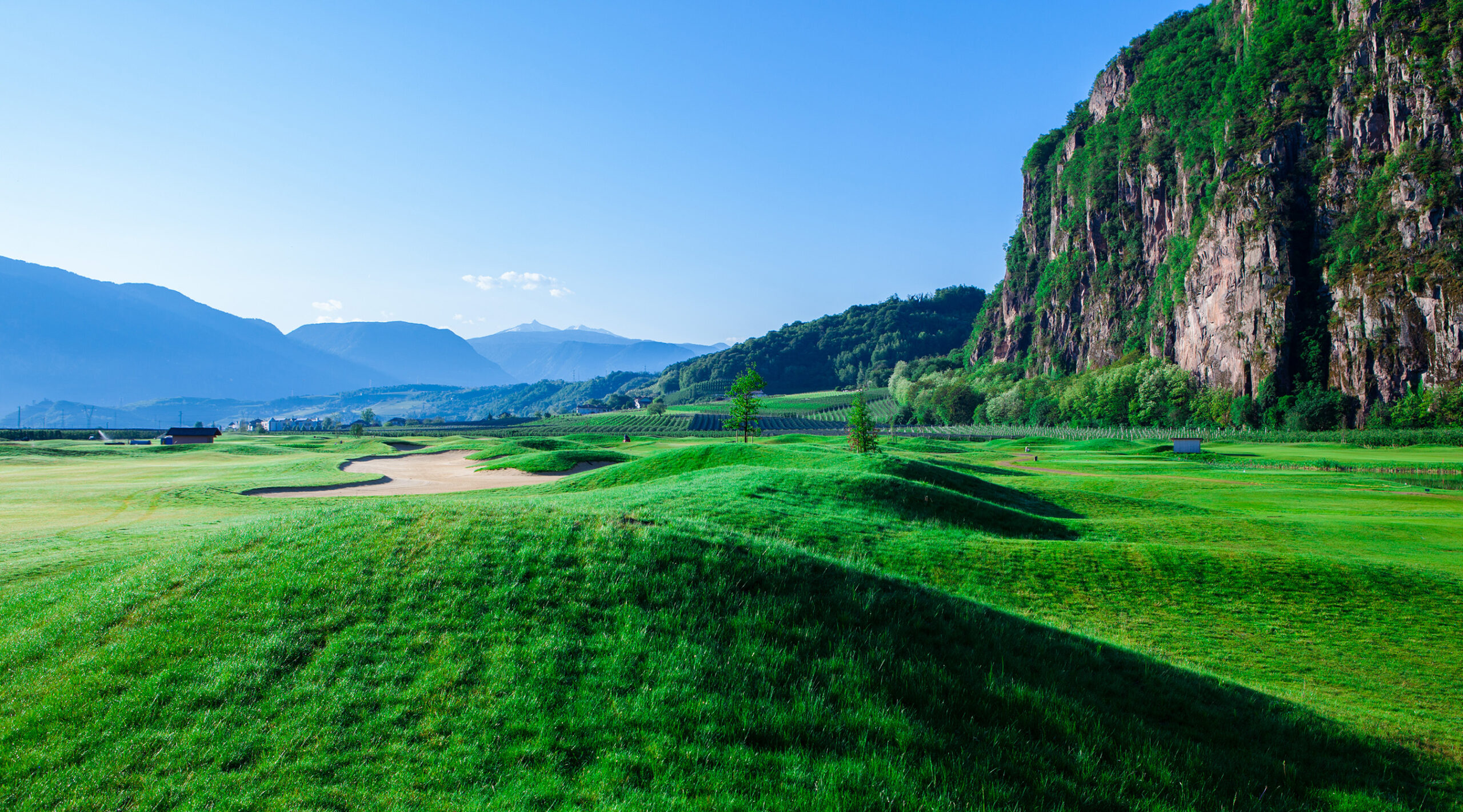 9-Loch-Anlage auf relativ flachem Gelände im milden Etschtal, ungewöhnlich für Südtirol.